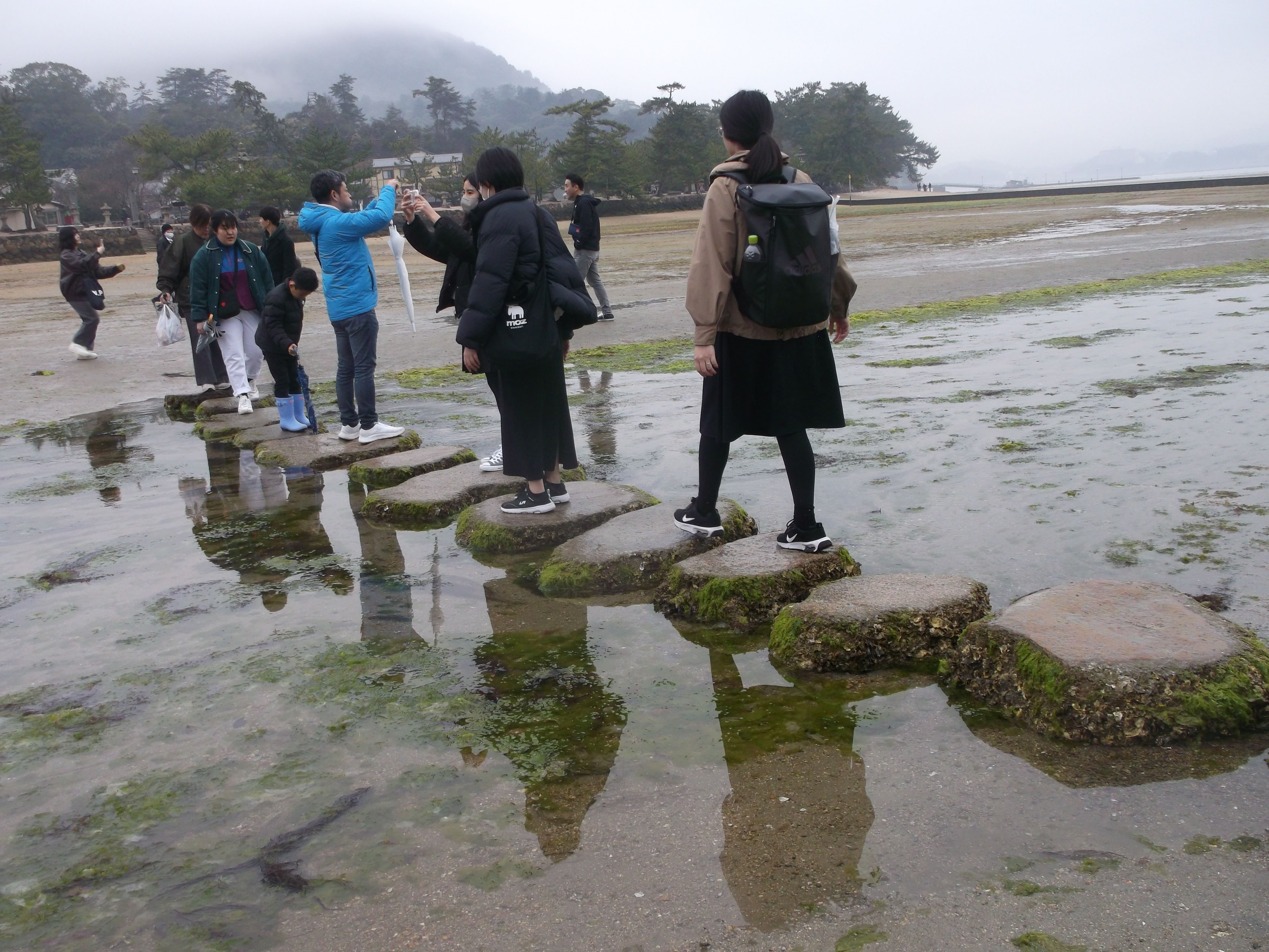 The thin silvery film of water in the foreground looks like it could have been left by recent showers - yet, it was deposited by the receding tide that promised to be back on schedule. In the meantime, the gate is considered to be “on land” (as opposed to “at sea”). Even so, to cross certain areas, one has to go barefoot or use mini-bridges made of stepping stones