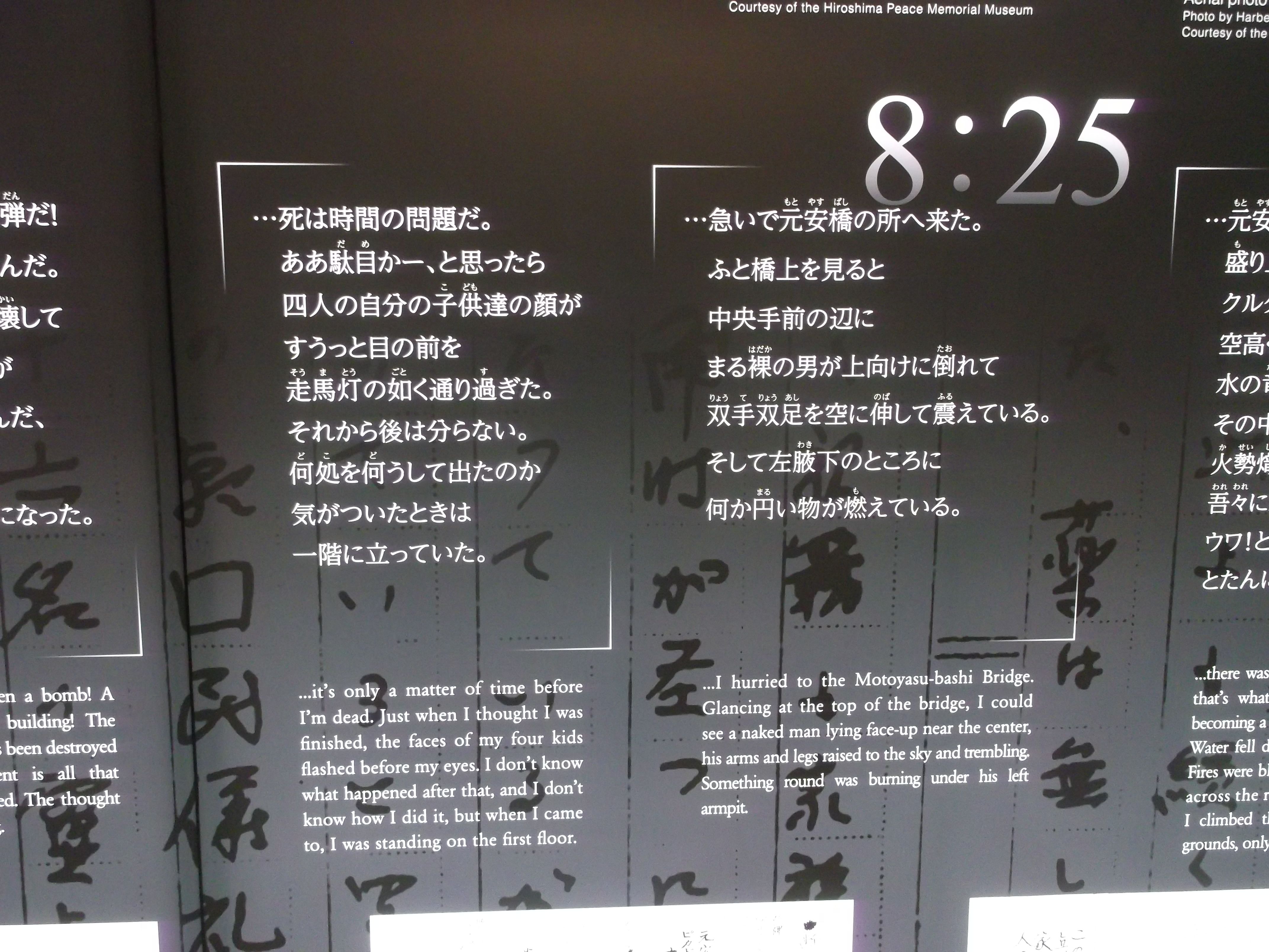 The Diary Exhibition at the Hiroshima Memorial Museum&Park consists of black slabs dotted with white symbols - rather small words (both literally and metaphorically) and big numbers