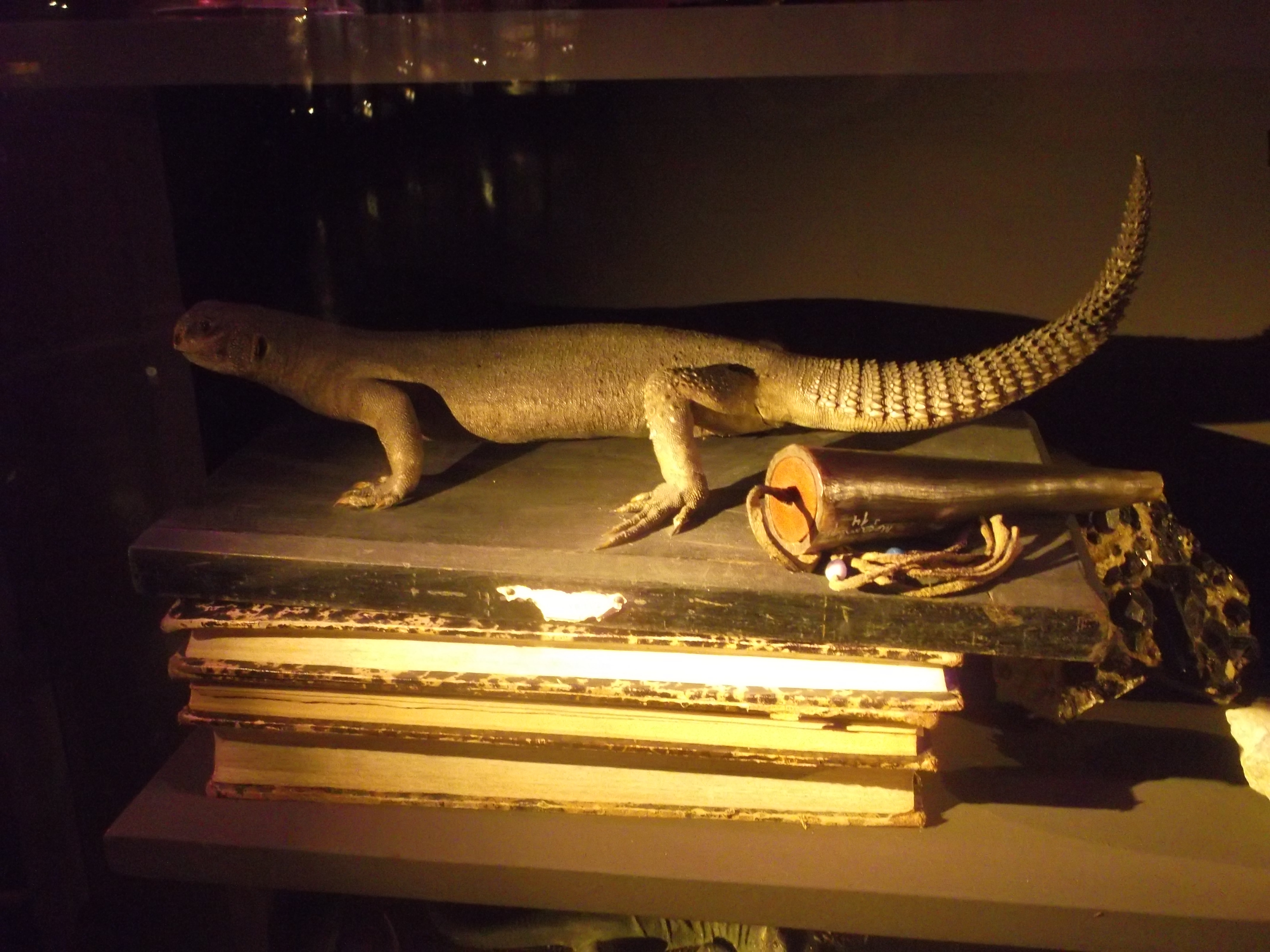 The next stop is a room of curiosities (also known as "wonder rooms" as a direct translation of German "Wunderkammern") featuring all sorts of creatures brought to Portugal from its overseas colonies during the Golden Age - something nobody in Medieval Europe had ever seen before. An early prototype of "Harry Potter"s elf Dobby seemingly straddling a strange device